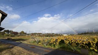 この日は雨が降ったりやんだりとぐずついた天気でしたが、きれいな虹が出ていました。