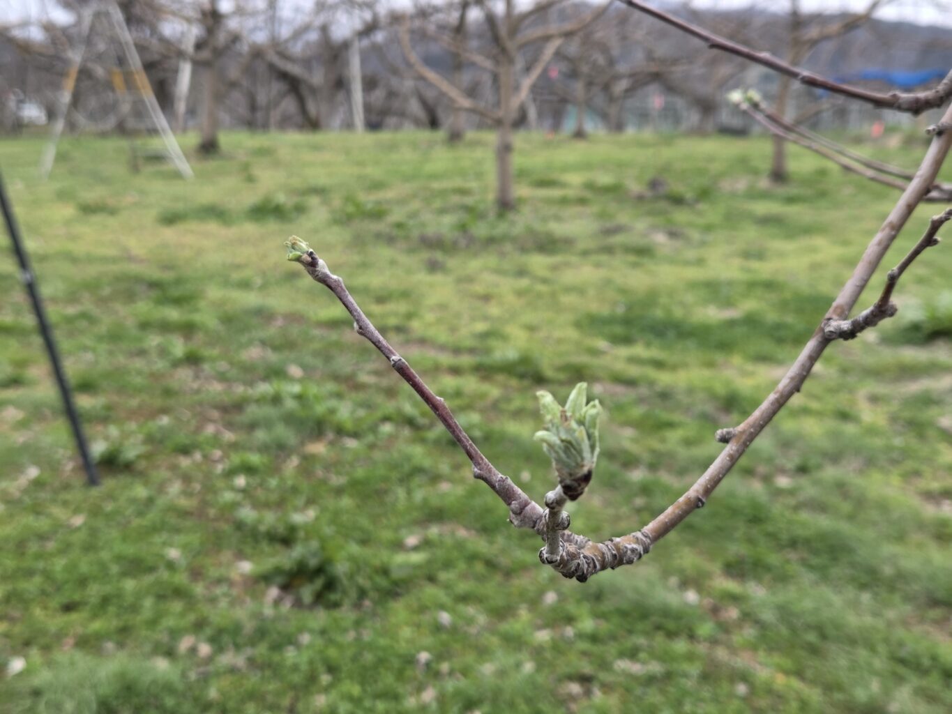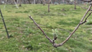 最近の暖かな陽気でりんごの葉も開きつつあります。