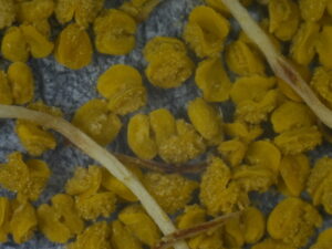 当社では花木や野菜など、様々な花の花粉を採取したりします。これは何の花粉でしょうか?答えは!・・・・梅です。梅・・・春ですねぇ~